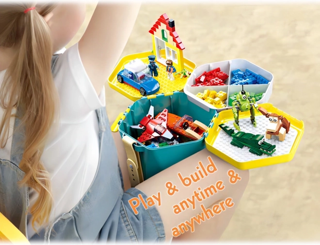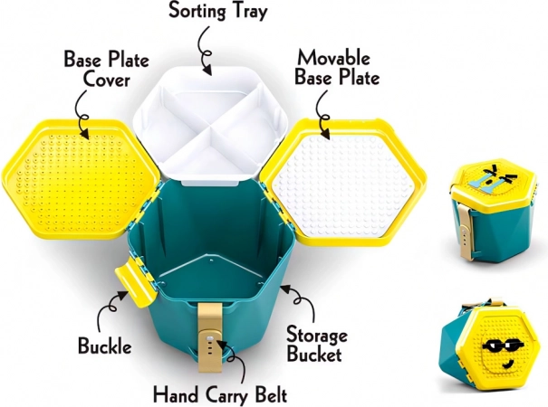 - Praktický kbelík – víko slouží jako stavební podložka a uvnitř je přihrádka pro přehledné třídění dílků.
