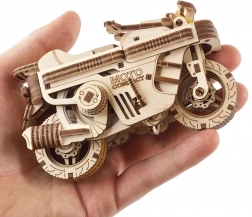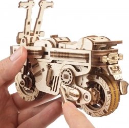 Skládací skútr UGEARS je chytrá dřevěná mechanická stavebnice, která spojuje zábavu, techniku a design. Díky promyšlené kompaktní konstrukci snadno sklopíte citlivé části a vezmete model s sebou – třeba v kapse batohu. Natahovací pohon s kovovou pružinou zvládne na jedno natažení dojet až 2 metry.