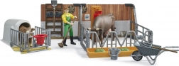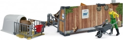Umožněte dětem stát se malými farmáři s touto detailní farmářskou sadou. Sada zahrnuje dva kotce: jeden pro tele a větší pro krávu, oba vybaveny napajedlem a krmítkem. Děti si užijí hraní s pohyblivou figurkou farmáře a realistickými nástroji, což jim přiblíží každodenní život na farmě.