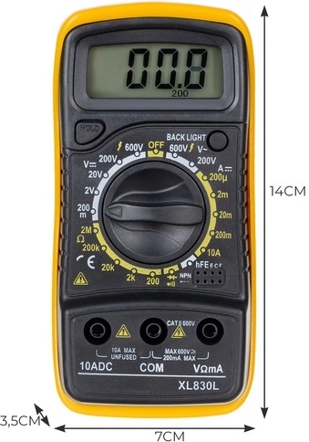 Univerzální digitální multimetr je navržen pro širokou škálu elektrických měření, což z něj činí nepostradatelný nástroj v každé dílně či pro domácí kutily. Nabízí řadu funkcí pro měření napětí, proudu a odporu, včetně testování diod a tranzistorů.