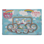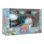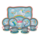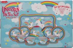 Rozkošná čajová souprava s motivem jednorožce potěší malé hostitelky i hostitele. Obsahuje 15 dílů z odolného kovu – šálky, podšálky, talířky, konvičku s pokličkou a servírovací tác 24 × 16 cm. Ideální pro předstírané čajové dýchánky a rozvoj kreativity i sociálních dovedností. Vhodné pro děti od 3 let.