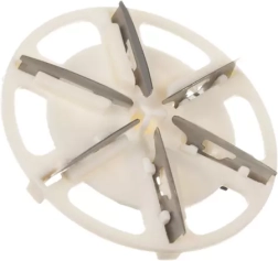 Hlava obsahuje 6 nožů z nerezové oceli pro efektivní ošetření textilií.
