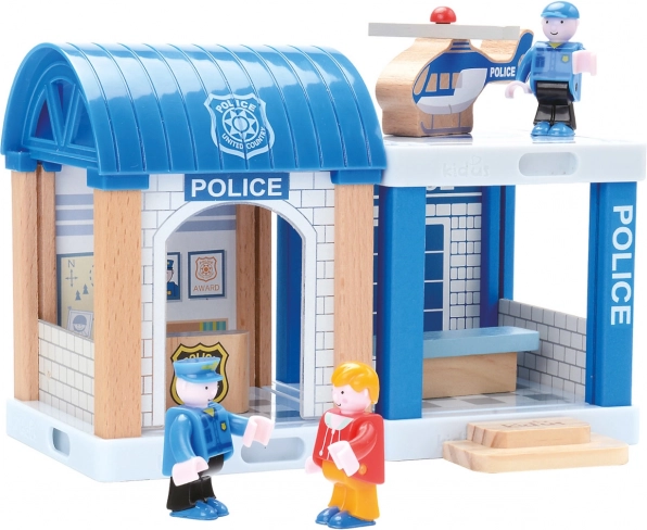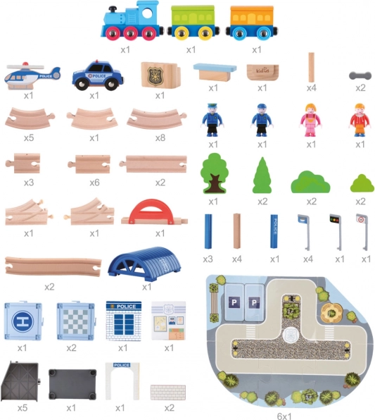 Tato detailně propracovaná dřevěná vláčkodráha je ideální pro malé inženýry, kteří milují vlaky a policejní dobrodružství. Obsahuje dráhu s mostem, atraktivní policejní stanicí a dalšími doplňky, včetně autíčka a helikoptéry.