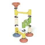 Stavebnice podporuje koordinaci ruka-oko, rozvíjí zručnost, smysly a kreativní myšlení dětí. Balení obsahuje 22 dílů, mezi nimiž jsou přímé a křivolaké dráhy, stojánky a velké chrastící kuličky, které zaujmou děti zvukovými efekty. Ideální pro malé stavitele od 18 měsíců.