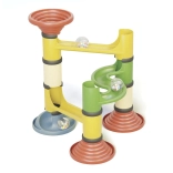 S touto jedinečnou stavebnicí mohou děti rychle a intuitivně postavit různé kuličkové dráhy díky snadnému spojování. Všechny části jsou vyrobeny z inovativního bioplastu, který kombinuje dřevěná vlákna a plast. Tato ekologická volba výrazně snižuje emise CO2 při výrobě a materiály jsou 100% recyklovatelné. Hračka nejenže vypadá a voní jako dřevo, ale je také odolná a příjemná na dotek.