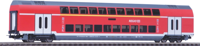Osobní dvoupodlažní vagón DB Regio je detailně reprodukovaný model čtyřnápravového vozu 1. a 2. třídy. Kombinuje precizní zpracování s autentickým designem německého dopravce DB Regio, ideální pro sestavy s kompatibilními vagony a lokomotivami.