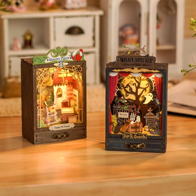Připravte svou scénu a zahrajte magická představení ve skříňkových dioramatech. Toto miniaturní divadélko je vybaveno hřejivým LED osvětlením, které vykreslí hloubku a atmosféru vaší scénky. Skryté posuvné panely z čirého plastu ochrání vaši dekoraci před prachem.