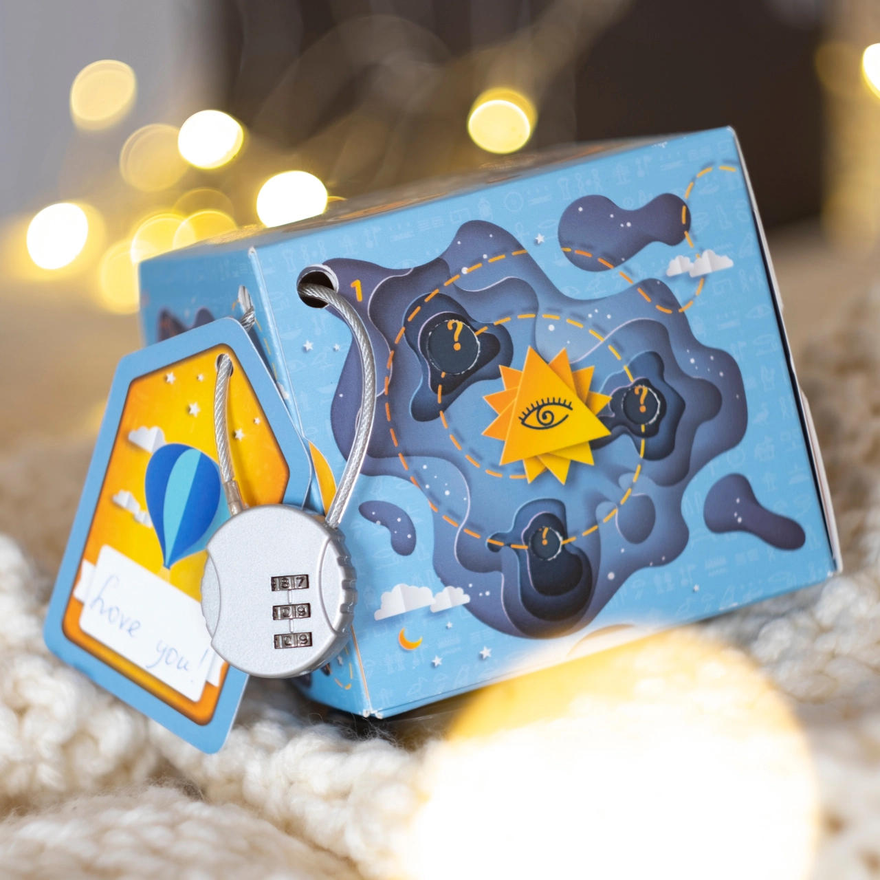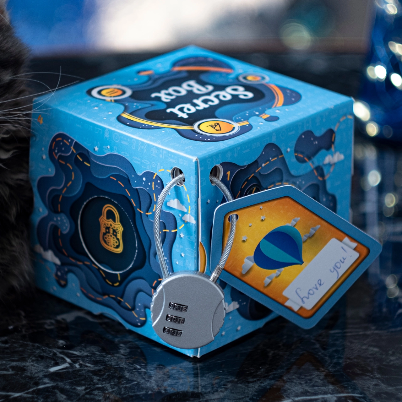Sestavte krabičku, zvolte vlastní třímístný kód a uzamkněte dárek spolehlivým kombinačním zámkem. Ideální pro napínavé předání překvapení.