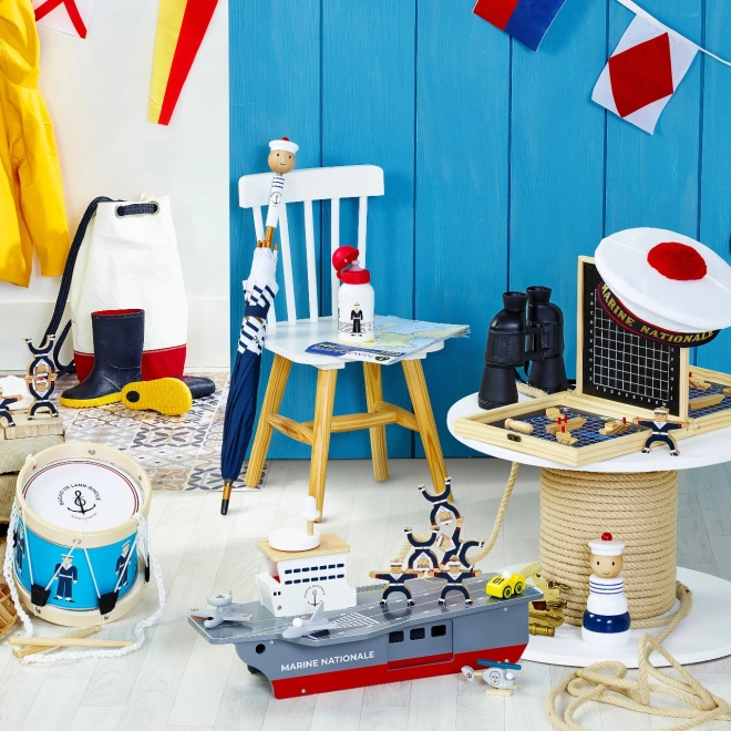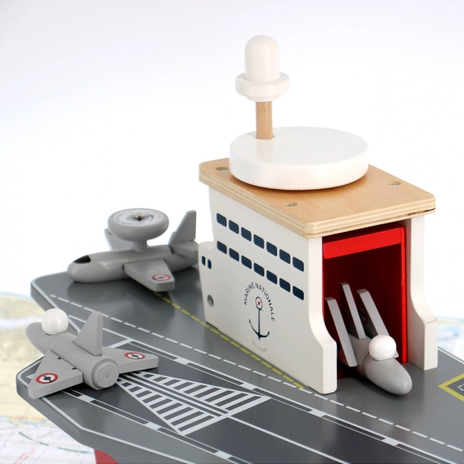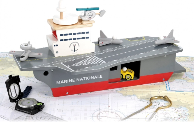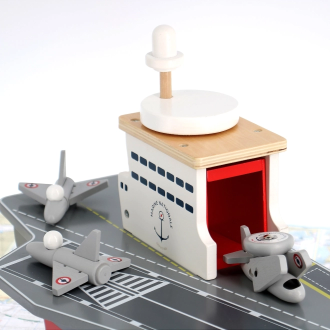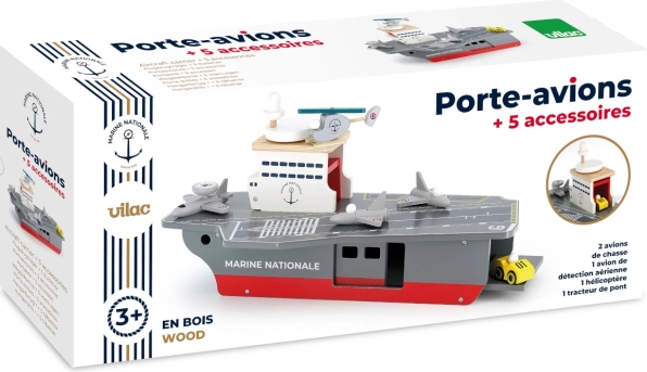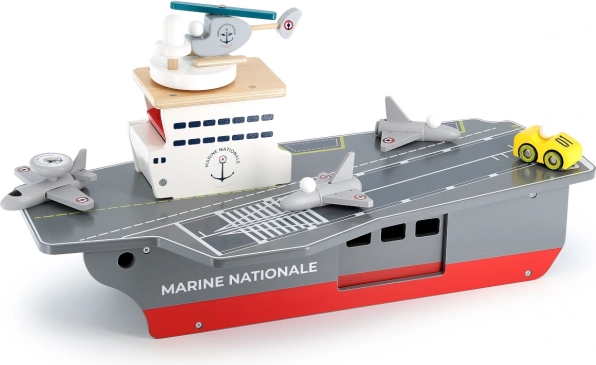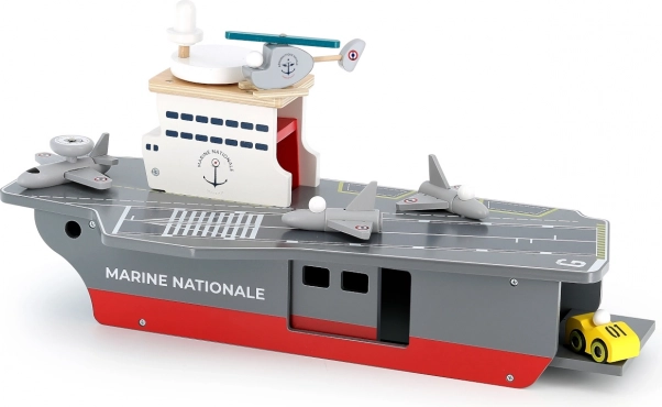 Tato precizně zpracovaná dřevěná letadlová loď věrně napodobuje skutečné nosiče letadel včetně označení Marine Nationale. Je vyrobena z odolné, a přesto lehké překližky, takže je stabilní a pohodlně se s ní manipuluje i menším dětem. Realistické malované detaily a promyšlené prvky podněcují představivost a přinášejí autentický námořní zážitek.