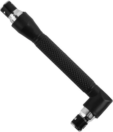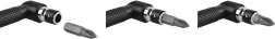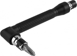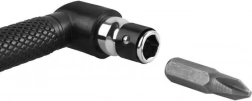 Šestihranný držák bitů umožňuje zašroubování nebo vyšroubování šroubů pod úhlem 90°, díky protiskluzové struktuře umožňuje bezpečný úchop i při práci nad hlavou na nepřístupných místech, kam mají jiné nástroje problém dosáhnout.