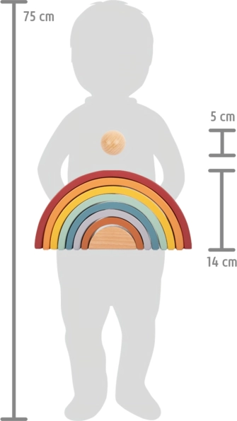 Tato duha ze dřeva poskytuje skvělou příležitost pro děti rozvíjet svou představivost a motorické dovednosti. Obsahuje 8 barevných oblouků a dřevěnou kuličku, která může sloužit jako výuková pomůcka pro pochopení rozměrů a barev. Hračka je vyrobena v souladu s Montessori pedagogikou a je ideální pro volnou hru.