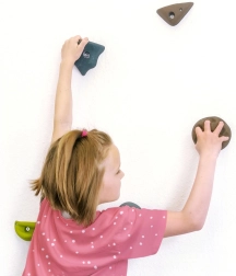 Úchyty jsou navrženy tak, aby se neotáčely, čímž zajišťují maximální bezpečnost pro malé horolezce.