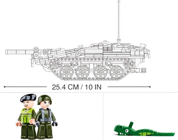 Tank po sestavení dosahuje délky 25,4 cm a skvěle vypadá na poličce i v akční hře. Figurky mají otáčivé a výkyvné části, což podporuje představivost i dynamickou hru. Stavebnice je plně kompatibilní s kostkami dalších značek, takže ji snadno rozšíříte o vlastní stavby.