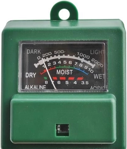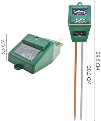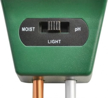 - 3v1 - Měřič kyseliny umožňuje odečítat vlhkost, pH a sluneční expozici. Na výrobku je přepínač pro pohodlné přepínání typu měření.