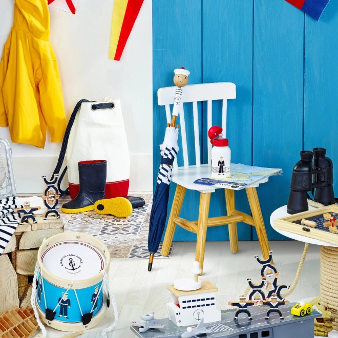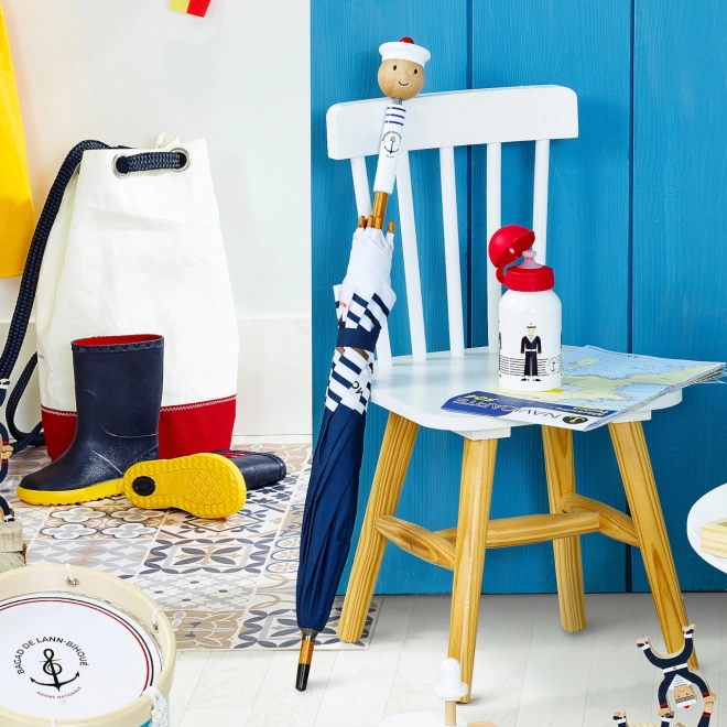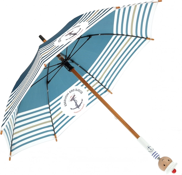 Stylový dětský deštník s námořnickými motivy od značky VILAC potěší každého malého i velkého dobrodruha. Díky kombinaci lehké karbonové konstrukce, masivní dřevěné rukojeti s pružně usazenou hlavičkou a bezpečnému systému zavírání je ideální na procházky v dešti. Vyrobeno ve Francii ve spolupráci s francouzským námořnictvem.
