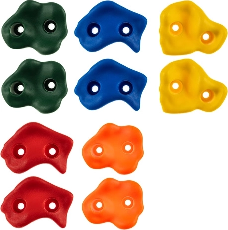 Rozšiřte dětské hřiště o bezpečné a odolné lezecké chyty, které motivují k pohybu a zábavě na čerstvém vzduchu. Sada 10 kusů v kontrastních barvách (červená, žlutá, zelená, modrá, oranžová) usnadňuje plánování tras a podporuje vizuální orientaci.
