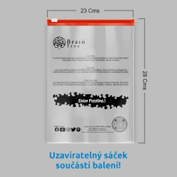 V balení naleznete plakát s motivem puzzle a praktické skládací kartónové přihrádky pro třídění dílků. Součástí je i papírový stojan pro víko krabice, který usnadňuje nahlížení na vzorový obrázek během stavby. Dílky jsou chráněny odolným uzavíratelným sáčkem, který je ochrání před poškozením a ztrátou.