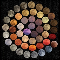 Motiv vznikl z astrofotografií Marcella Julie Pace, pořízených na různých místech Itálie během deseti let. Každý snímek ukazuje, jak se barvy úplňku mění – od červené a žluté při obzoru po vzácné modré tóny způsobené prachovými částicemi v atmosféře.