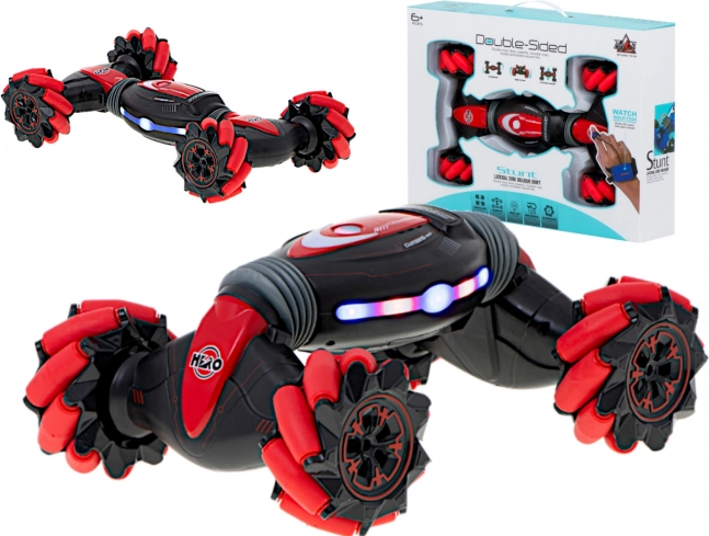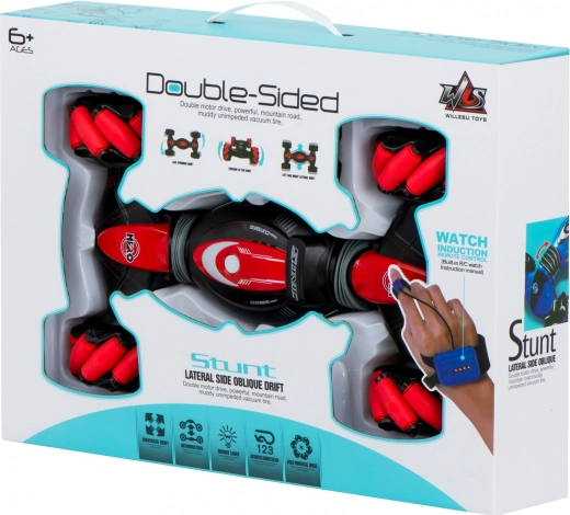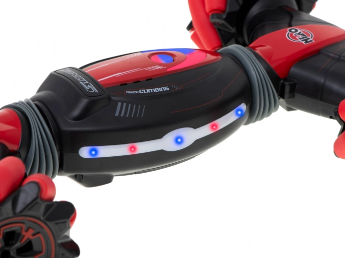 Součástí balení jsou 2 ovladače – klasický a náramkové ovládání gesty, které umožní měnit směr, hudbu i tvar podvozku za jízdy. Auto je dvoustranné, takže po nárazu či převrácení pokračuje v jízdě „vzhůru nohama“. Konstrukce je připravená na zábavu v terénu – písek, tráva i nezpevněné cesty.