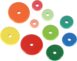 - Motorika a koordinace – navlékání kotoučů podporuje dovednosti „ruka–oko“.