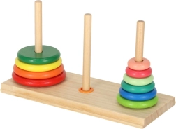 Tato nadčasová logická hra trénuje trpělivost a soustředění: úkolem je přenést všechny kotouče z první tyče na poslední tak, aby byly opět seřazeny od největšího po nejmenší – vždy lze přesunout pouze jeden kotouč a menší kotouč nesmí ležet na menším. Zní to jednoduše, ale prověří děti i dospělé.