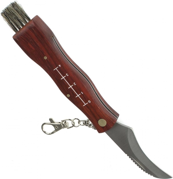 Tento univerzální houbařský nůž kombinuje ostré zahnuté ostří pro přesné odřezávání hub s jemným štětečkem pro odstranění nečistot. Dřevěná rukojeť skvěle padne do ruky a integrovaná měrka na jedné straně pomůže rychle odhadnout velikost úlovku.