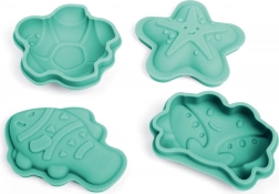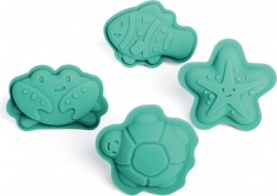 Sada obsahuje čtyři různé silikonové formy ve tvaru kraba, ryby, hvězdice a želvy pro maximální kreativitu vašich dětí.