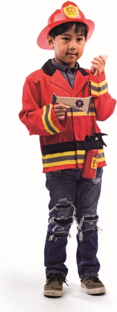 Proměňte malé hrdiny v akci s tímto realistickým hasičským kostýmem. Součástí je červená bunda, nastavitelná helma a bohaté příslušenství pro kreativní hraní. Jednoduché zapínání na suchý zip, bezpečné materiály a detailní zpracování podporují fantazii i role-play hry.
