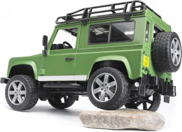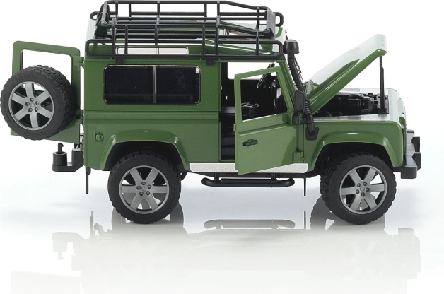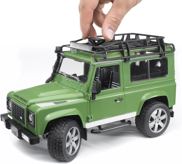 Bruder LAND ROVER zelený Bruder LAND ROVER DEFENDER zelený je terénní dvounápravový vůz propracovaný do detailů. Má otevíratelný motorový prostor s detailním zpracováním pohonného agregátu, otevírání dveří, odpružené obě nápravy, otevírání zadních dveří nákladového prostoru, odnímatelné závěsné zařízení, střešní zahrádku, funkční řízení. Vůz lze ovládat buď klasickým volantem na místě řídiče, nebo je možné použít prodloužený volant a zasunout jej do adaptéru ve středovém panelu LAND ROVERU po otevření střešního okna, což usnadní ovládání vozu. Prodloužený volant je součástí vozu a je umístěn v podvozku. Vyrobeno v Německu, z kvalitních materiálů.Hlavní vlastnosti: odpružený dvounápravový vůzotevíratelný kryt motorudetailní zpracování pohonného agregátuotevírací dveředruhý volant pro snadné ovládání volantuvyrobeno v Německu