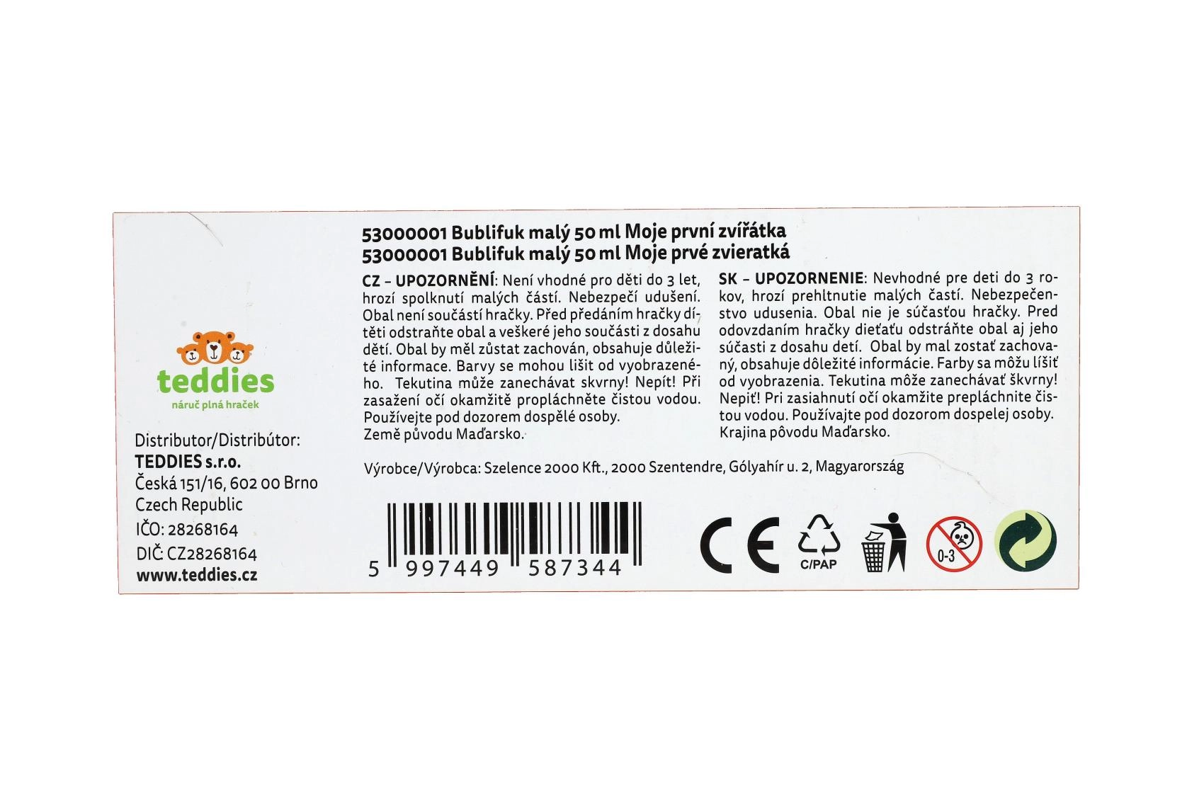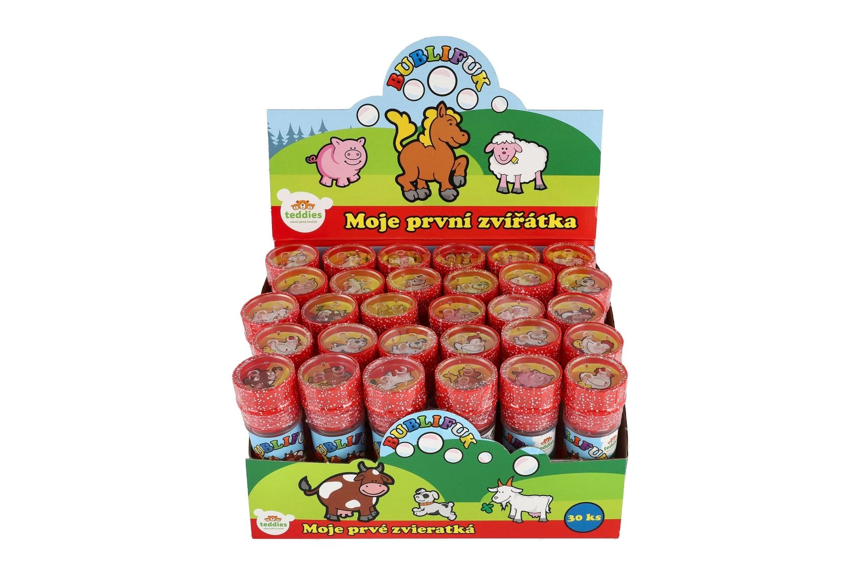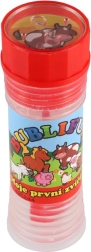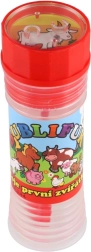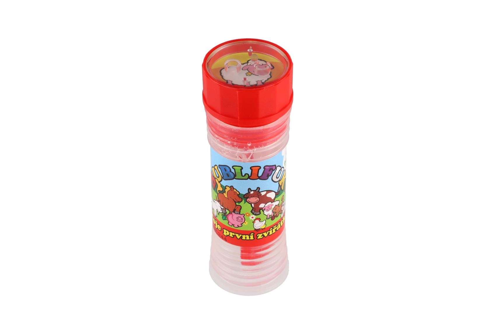 Zábavný bublifuk s motivem Moje první zvířátka potěší každé dítě. Obsahuje 50 ml bublinkové tekutiny, ve víčku je integrovaná hra a foukátko je součástí víčka. Ideální na oslavy, venkovní hraní i drobné odměny. Vhodné od 6 let.