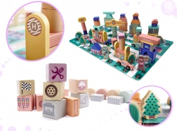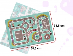 Každé město potřebuje ulice a auta – a tento set obsahuje puzzle, které když jsou složeny, vytvoří hrací plochu s tratí. Najdete zde různé prvky jako budovy, postavy a vozidla. Kostky jsou vyvedeny v pastelových barvách, což nejen podněcuje zrakové vnímání dítěte, ale také jeho logické a netradiční myšlení.