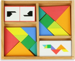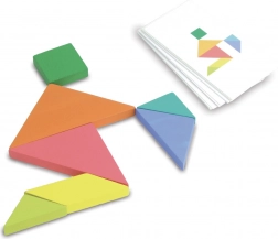 Zábavná a chytrá hra pro 1–2 hráče: kdo jako první složí obrazec podle kartičky, vyhrává! Více než 100 kartiček, 4 úrovně obtížnosti a 2 kompletní sady tangramů z kvalitního dřeva. Skvěle trénuje logické myšlení a prostorovou představivost u dětí od 5 let i dospělých.