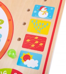 Dřevěný kalendář s hodinami od značky BIGJIGS TOYS je komplexní učební pomůcka, která dětem pomůže pochopit čas, dny v týdnu, měsíce, roční období i počasí. Barevné provedení a pohyblivé ukazatele udržují pozornost a podporují aktivní zapojení.