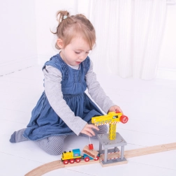 Jeřáb lze snadno kombinovat s ostatními dřevěnými vláčkodráhami na trhu, což z něj činí univerzální hračku.