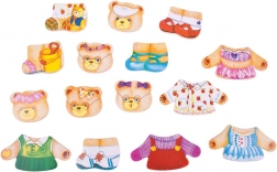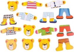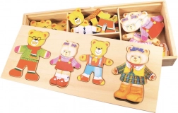 Oblékejte pana Medvěda, paní Medvědici a jejich dvě medvíďata do nejrůznějších outfitů a objevujte emoce pomocí výměnných hlaviček s různými výrazy. Dřevěné dílky jsou příjemné do ruky, snadno se skládají a podporují kreativní hru i učení formou zábavy.