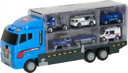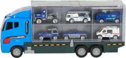 Velký modrý kamion kombinuje funkci úložného prostoru s možností hry. Umožňuje přepravovat až 14 malých kovových autíček, která jsou součástí balení. Autíčka realisticky napodobují skutečné policejní a nouzové vozy. Kamion má dvě strany s průhlednými dvířky a bezpečnostními zámky, což zajišťuje, že autíčka nevypadnou během jízdy. Obsahuje také vystřelovač autíček z přední části, který přidává hře další rozměr.