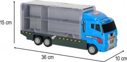 Kamion má dvě oddělené úložné sekce, které umožňují uložení až 12 autíček v hlavních přihrádkách a dalších 2 aut na otevíracím vršku. Praktické využití pro děti, které si mohou hrát a také snadno udržovat pořádek.