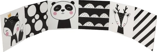 Kontrastní leporelo je navrženo pro nejmenší děti, které nejlépe reagují na ostré kontrasty černé a bílé. Roztomilé motivy lesních zvířátek a jednoduché vzory pomáhají rozvíjet soustředění a zrakové vnímání už od prvních týdnů života.