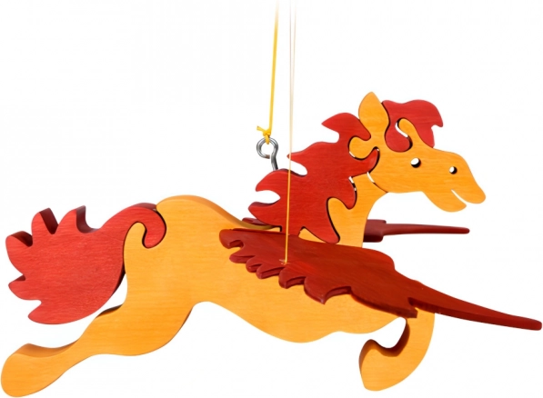 Okouzlující dřevěná dekorace do dětského pokoje – létající kůň, který po zatáhnutí za provázek začne „mávat křídly“. Ručně vyhlazené dřevo, bezpečné provedení a snadné zavěšení dělají z této závěsné dekorace půvabný doplněk nad postýlku či do herního koutku.