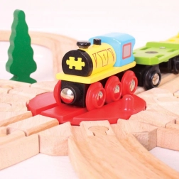 Točna Bigjigs Rail je vyrobena z odpovědně získaných přírodních materiálů a je plně kompatibilní s většinou běžně dostupných dřevěných vláčkodrah. Přesné zpracování zajišťuje hladký chod a snadné napojení kolejí.