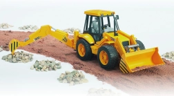BRUDER JCB 4CX je detailní bagr-nakladač, který věrně napodobuje skutečný stavební stroj a přináší dětem autentický zážitek ze hry doma i na písku. Díky funkčním dílům – přední lžíci a zadnímu bagrovému rameni – mohou děti nakládat, hrabat a převážet materiál jako na skutečné stavbě.