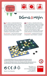 Užijte si klasické strategické hry kdekoliv na cestách. Kompaktní sada od značky Dino nabízí oboustranný herní plán pro dámu i mlýn, společné černé a bílé kameny a praktické balení do batohu. Skvěle zabaví děti i dospělé a rozvíjí logické myšlení, taktiku a trpělivost. Vyrobeno v ČR, držitel certifikace Bezpečná a kvalitní hračka.