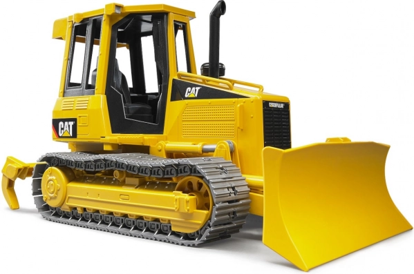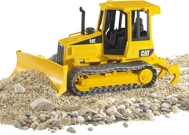 Model s detailním provedením charakteristickým pro stroje značky CAT, včetně gumových pásů a velké pohyblivé radlice.