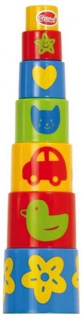 Pyramida s motivy a barevnými formičkami, které dětmi milují. Formičky jsou vyrobeny z odolného a nezávadného plastu a mohou být snadno složeny do sebe, což šetří místo při úklidu.
