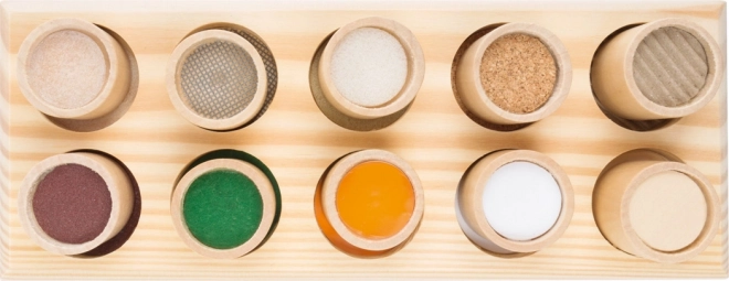 Objevujte svět barev a textur se smyslovou hrou pro děti od 3 let. Tato dřevěná hmatová hra rozvíjí motoriku, soustředění a smyslové vnímání. Děti přiřazují nádobky podle stejného povrchu jen pomocí hmatu – zábavné a poučné pexeso, které podporuje učení hrou.