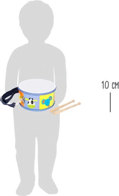 Barevný dětský buben s motivem zvířat od značky Small Foot je ideální pro rozvoj rytmu a koordinace u dětí. Obsahuje dva dřevěné paličky a nastavitelný popruh pro snadné přenášení.