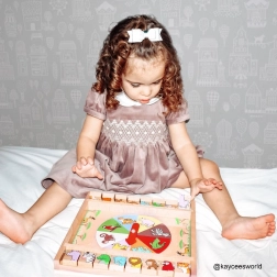 Odolná dřevěná deska a pevné dílky snesou každodenní hraní. Materiály z udržitelných zdrojů a provedení odpovídající evropským normám.