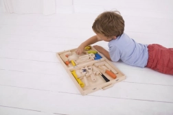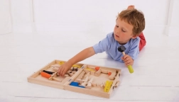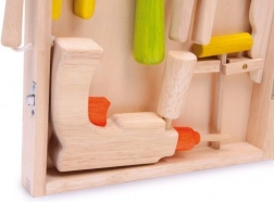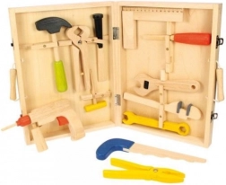 Skvělý dřevěný kufřík s nářadím pro všechny mladé kutilské nadšence, kteří chtějí rozvíjet své řemeslné dovednosti. Obsahuje kladivo, kleště, vrtačku a klíče na matice, vše z kvalitních materiálů.