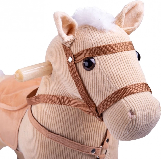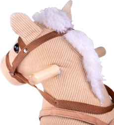 Béžový houpací kůň je navržen tak, aby dětem poskytl bezpečnou a pohodlnou jízdu. Měkké sedlo a uzdečka z jemného manšestru lákají k doteku a hra tak rozvíjí nejen představivost, ale i motorické dovednosti. Robustní dřevěná základna zajišťuje jisté houpání bez nežádoucího kymácení.