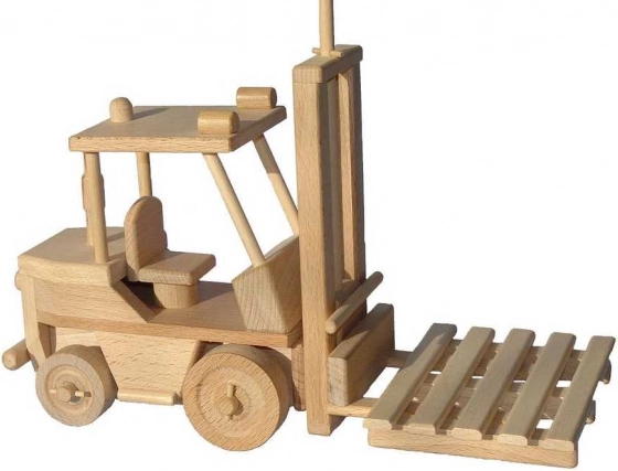 Tento realistický dřevěný model vysokozdvižného vozíku je vyroben z pečlivě opracovaného bukového dřeva. Povrch je pouze voskovaný a leštěný, takže vynikne přírodní kresba dřeva a hračka zůstává bez barviv a chemických úprav. Díky zaobleným hranám a robustnímu zpracování je vhodný pro každodenní hraní doma i venku.